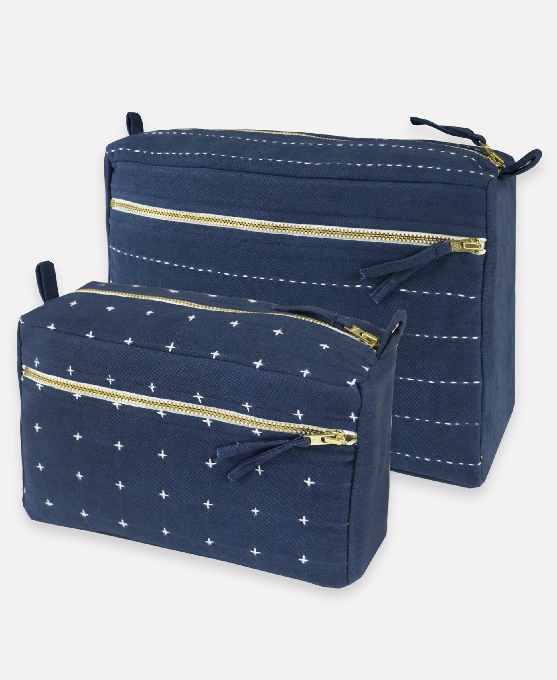 Anchal Project's large toiletry bag is both charming and functional. Featuring a hand-embroidered pinstripe stitch, this pouch is the perfect size to keep all your cosmetics in one place with an exterior zip pocket for convenient extra storage.