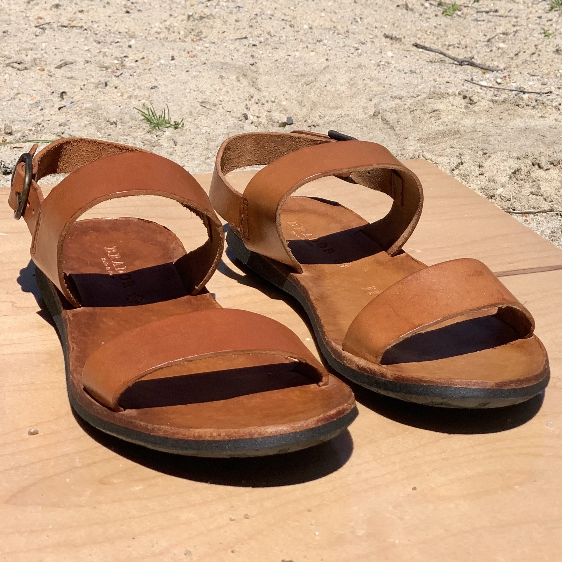 Brador Natural Strap Sandal Natural Calfskin leather upper with synthetic sole. Enjoy the ease of these handmade sandals. Perfect for warmer days.