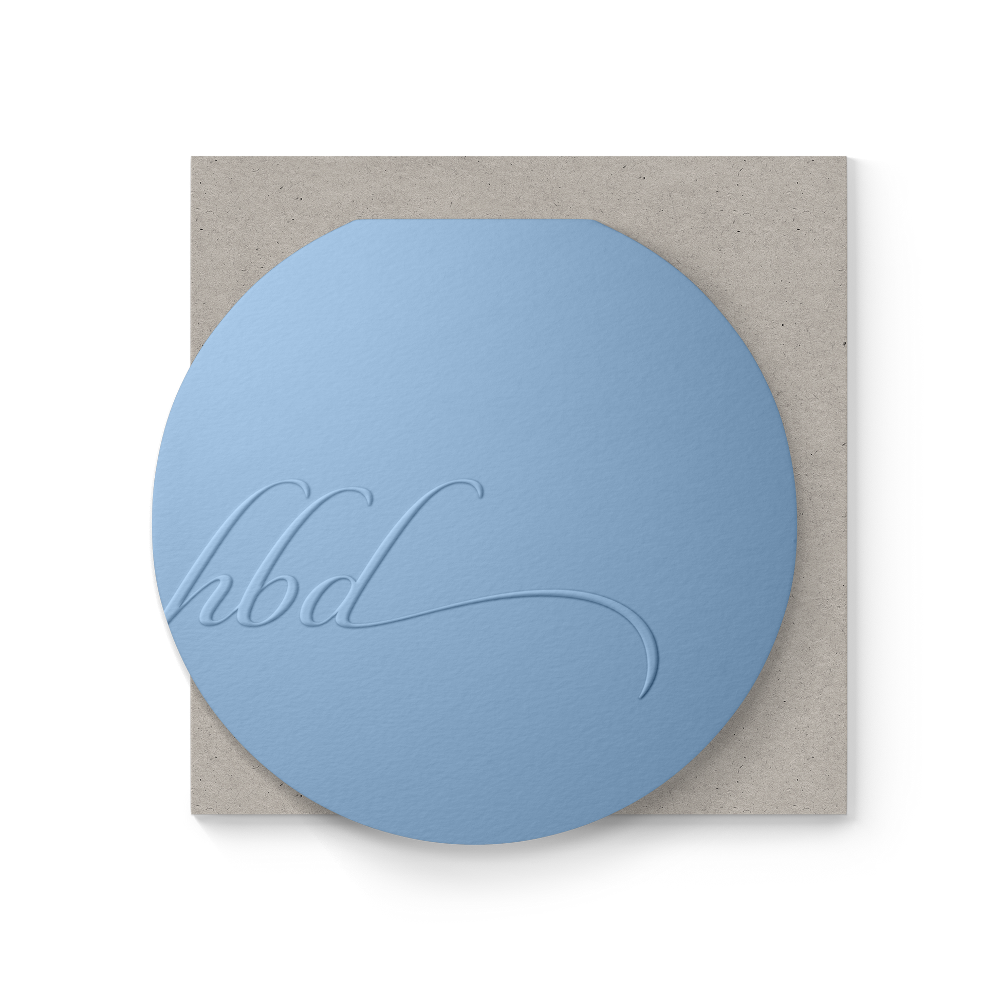 Tone-on-tone embossing unveils a simple one-word message in the purist of ways. Blank inside for your bare thoughts.