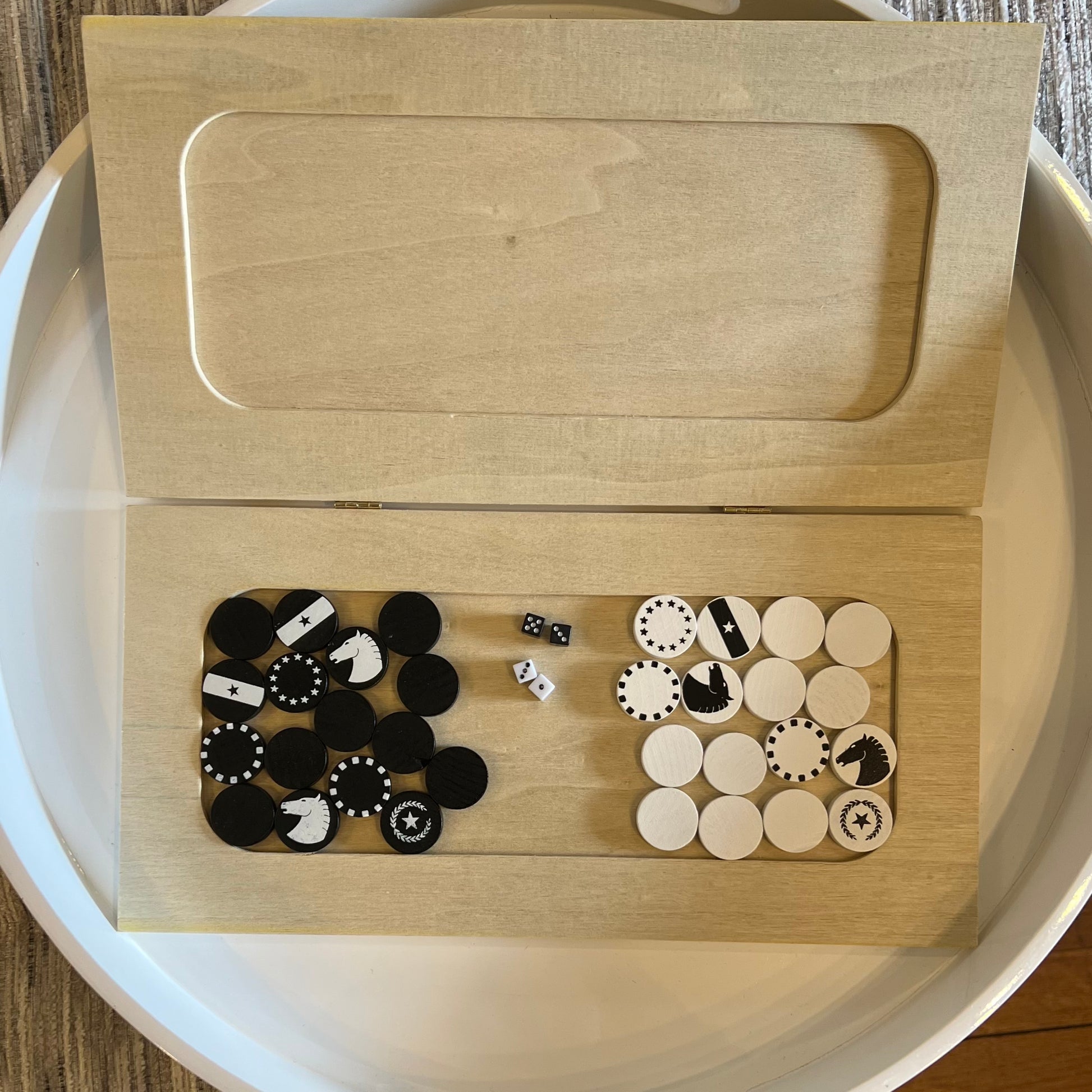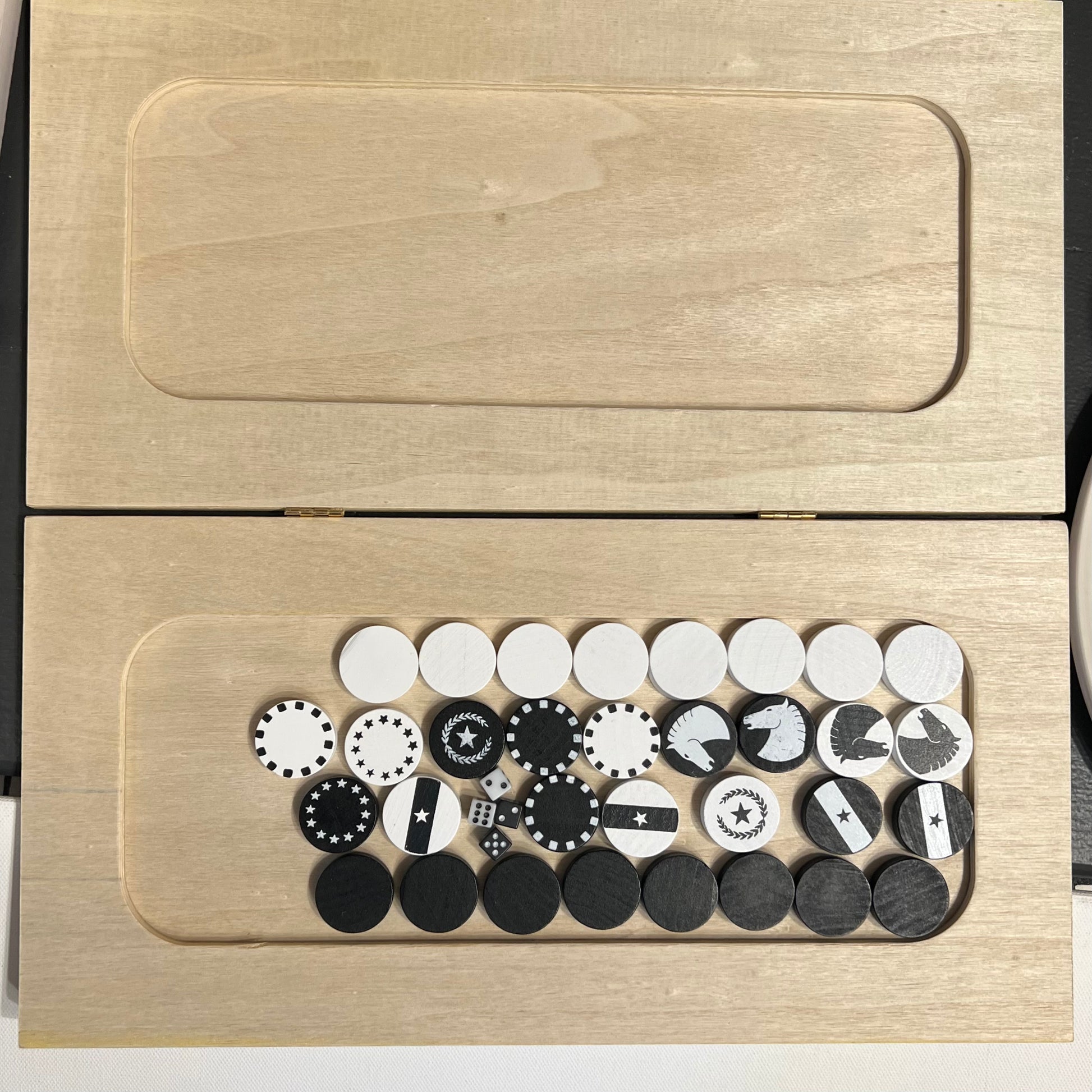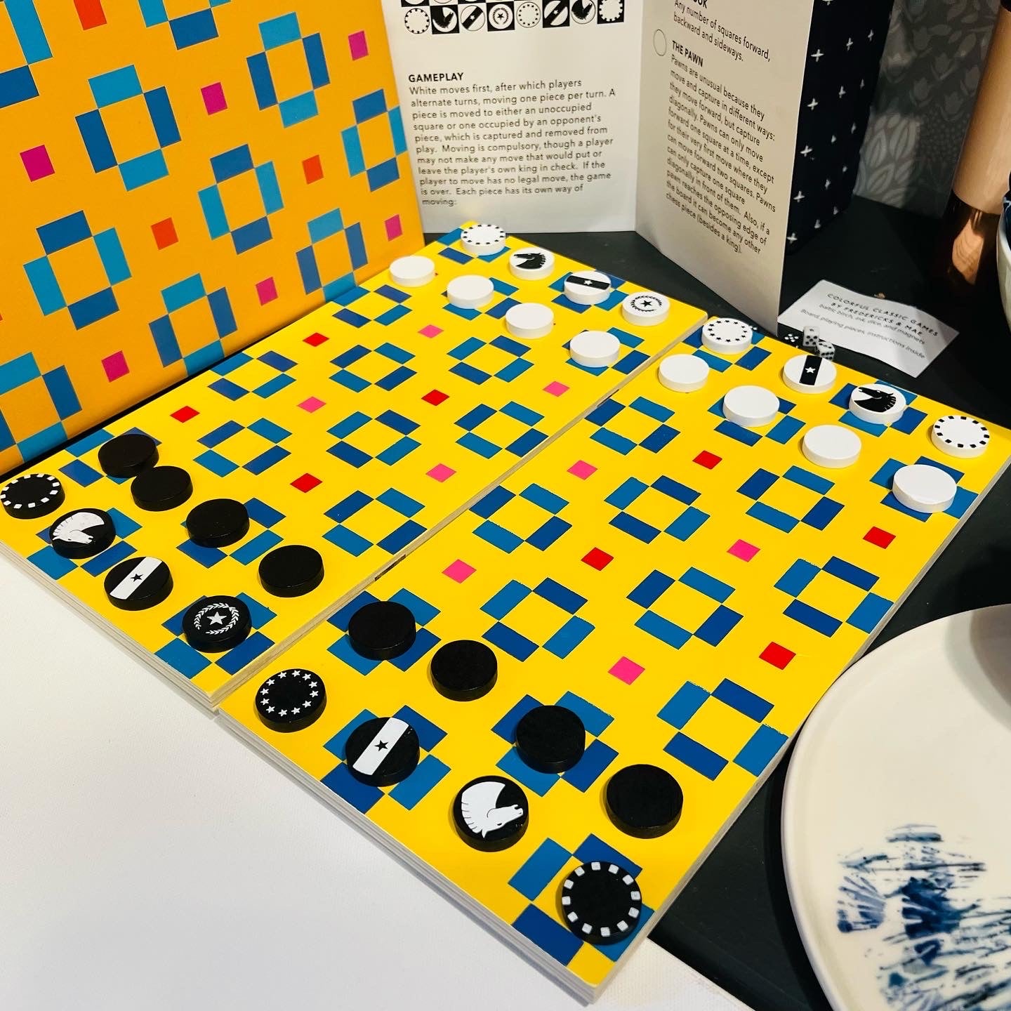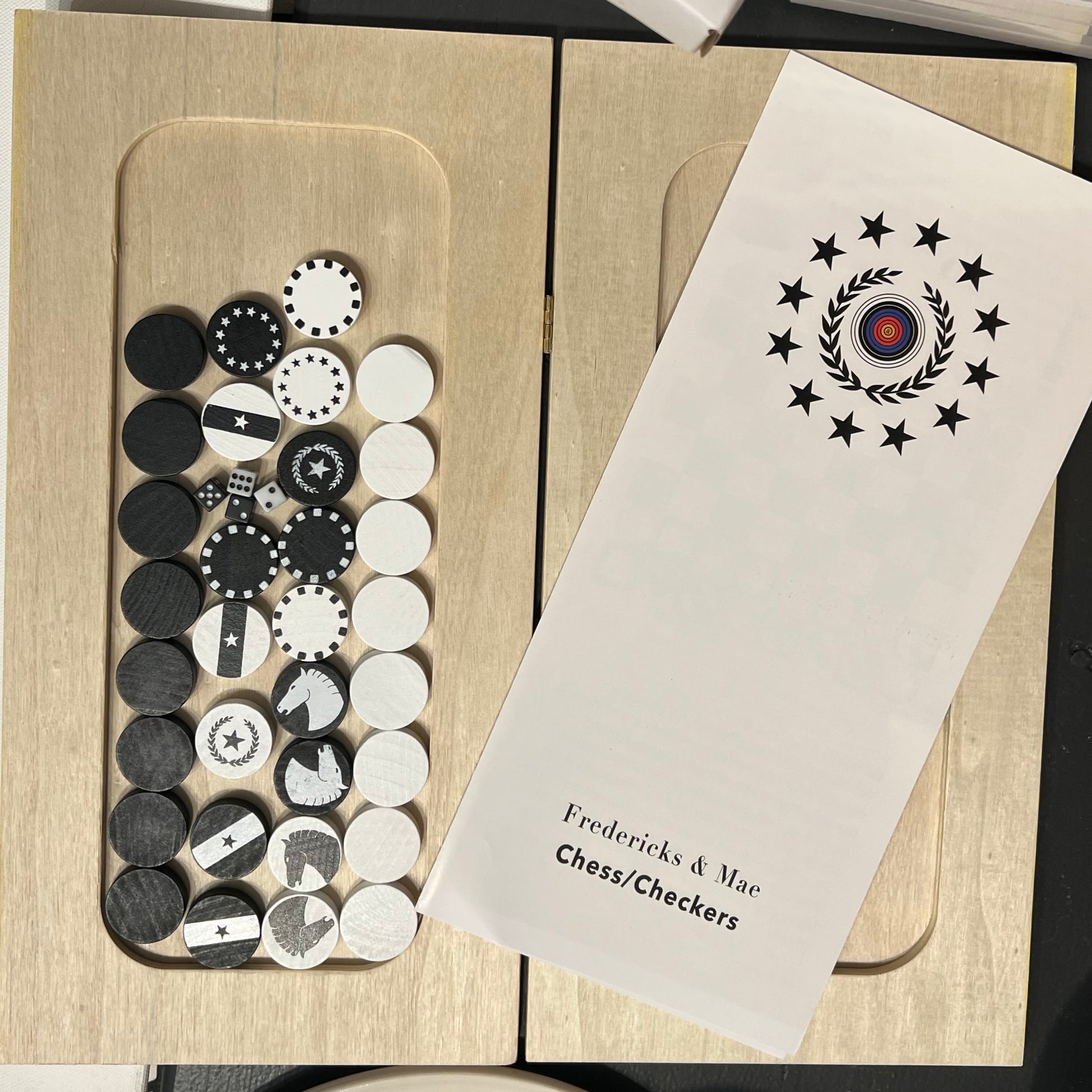 "Set includes 24 playing pieces, a nifty booklet, and a board that can be used to play either chess, or checkers. Let's play!