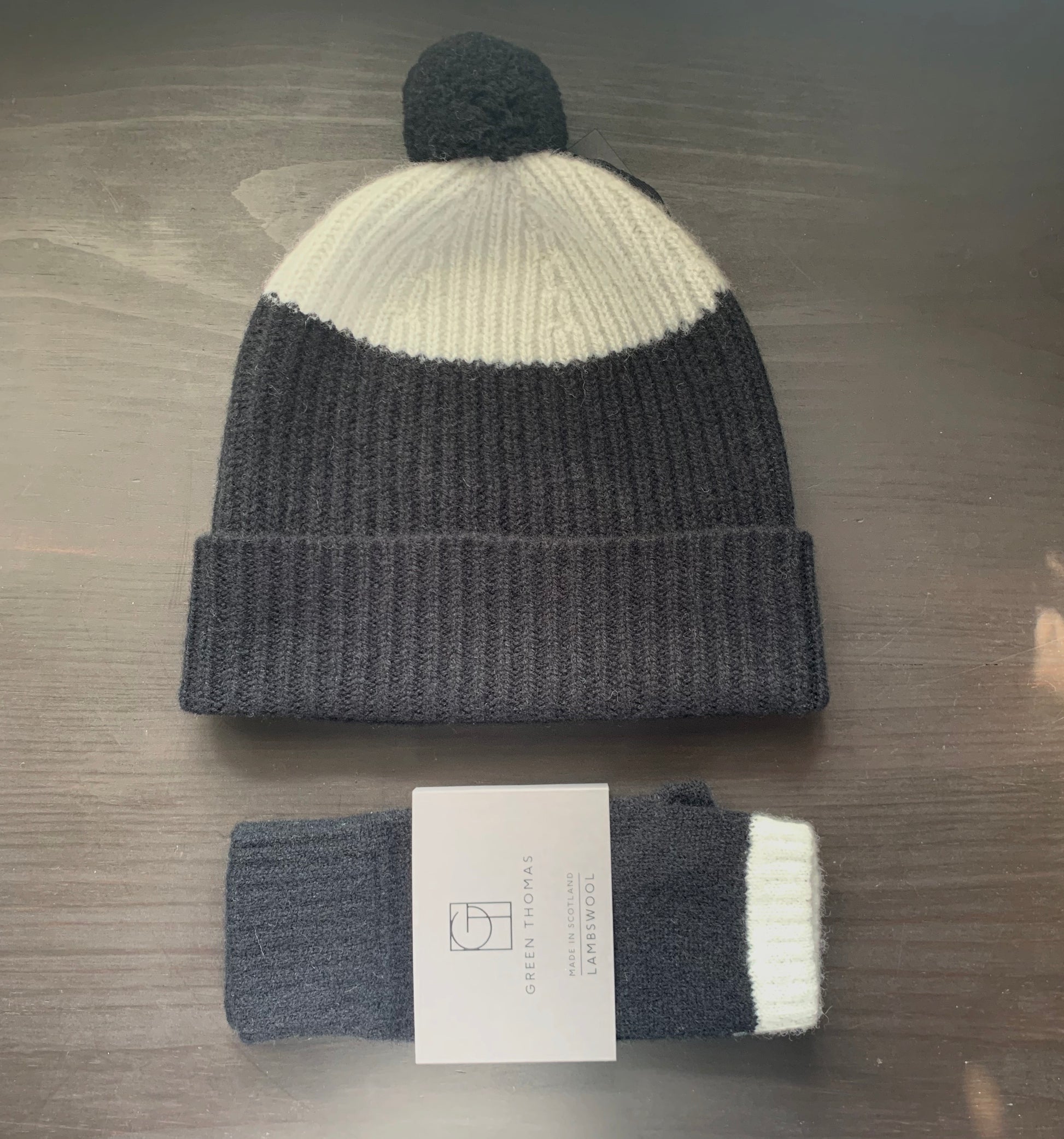 Green Thomas Pom Hat Merino lambswool two tone colors - "A cozy bobble hat with a pom pom. Perfect for a chilly day.