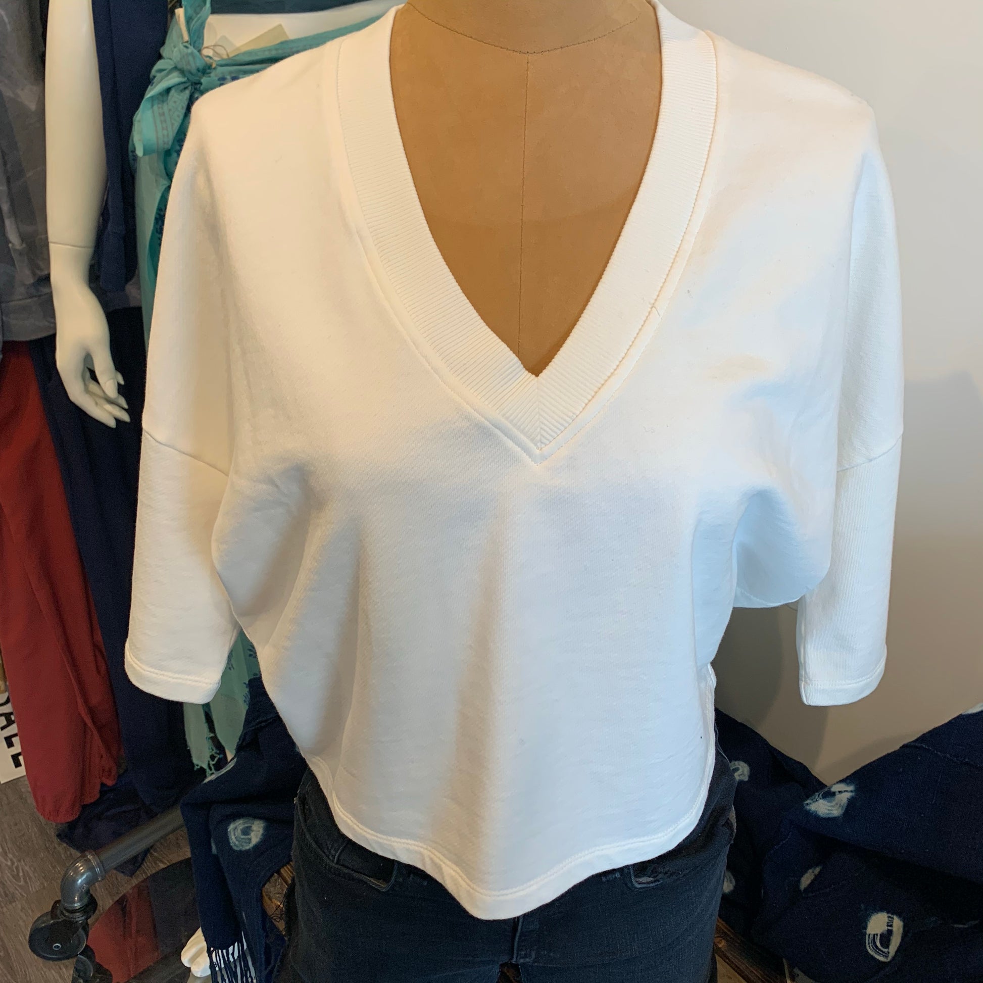 Humanoid BINDI IVORY short sleeve oversized V neck terry sweatshirt