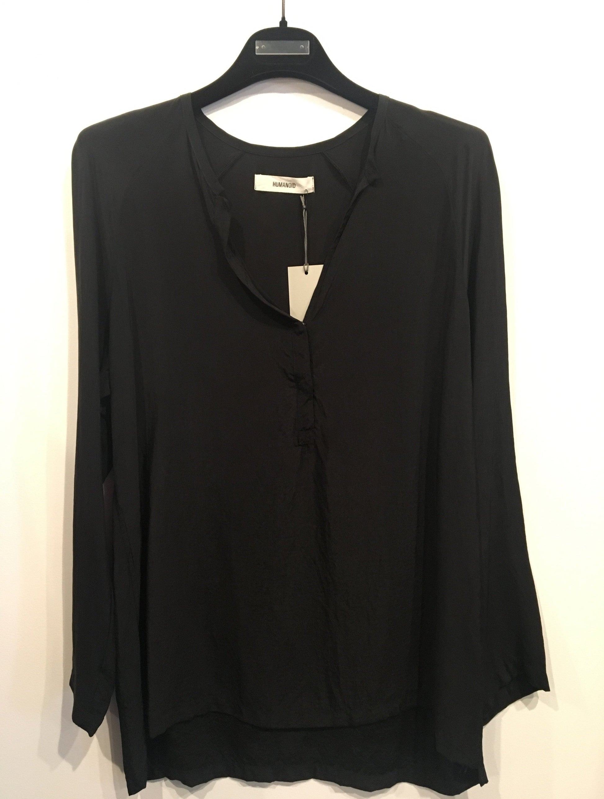 Luxe year round staple cupro-viscose blend ensures a comfy and feminine fit. Split neck top has a rounded neckline with snap closure The back is slightly longer than the front.