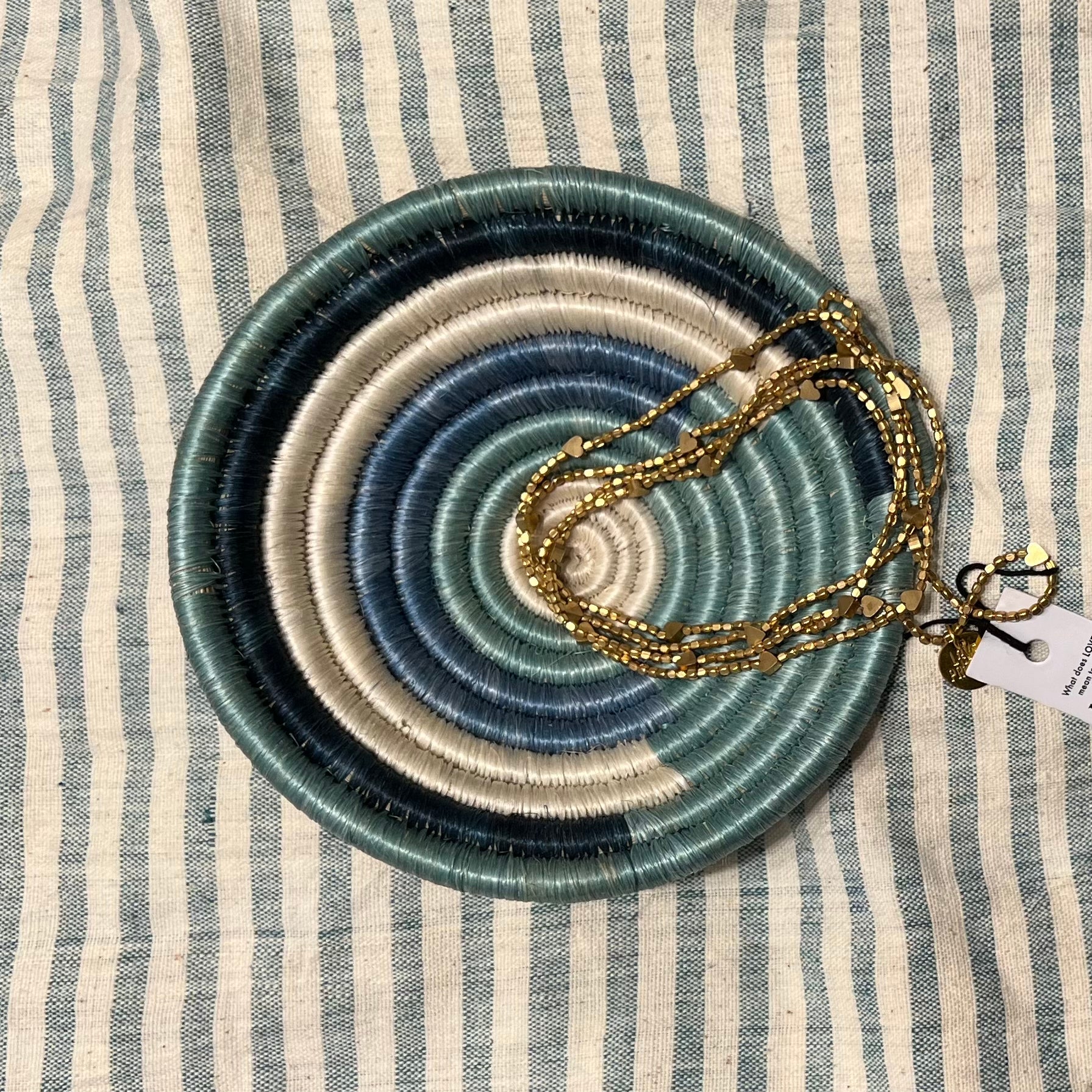 "This shallow bowl has a variety of uses. A calming pieces of wall art to add to you gallery wall. The perfect size bowl to store items such as keys, jewelry, or trinkets. Place it on the coffee table, dresser, or bedside table. A thoughtful gift.