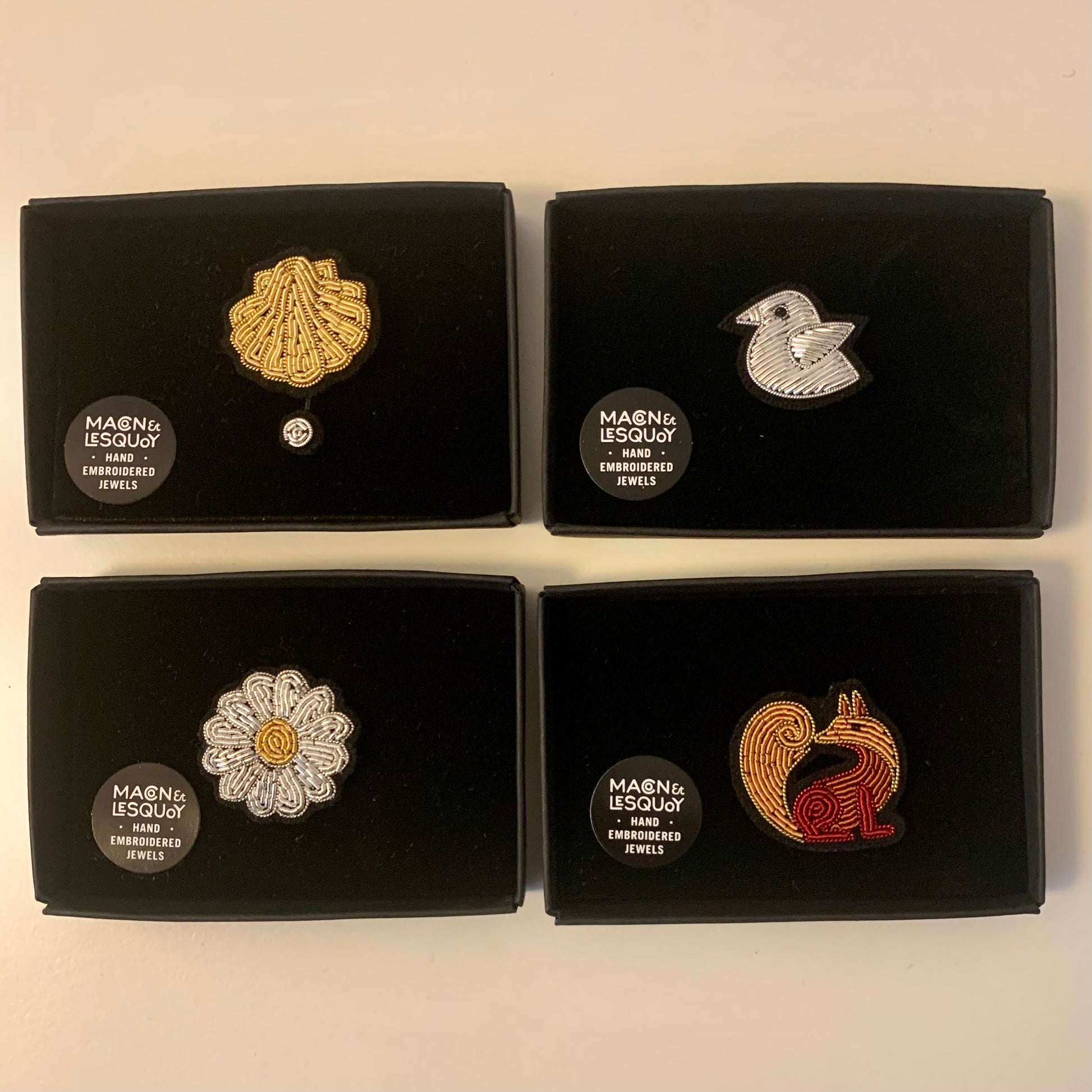 Macon & Les Quoy Embroidered Pin. Exceptional pieces to give and to receive.