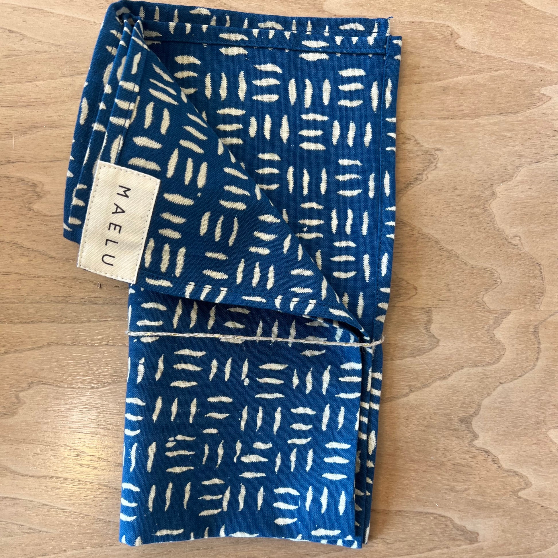 Due to the handprinted nature of block print, slight color differences and imperfections between fabrics are expected. These differences enhance the beauty of our textiles and are celebrated. Some natural dyes, especially indigo, may bleed and transfer. We recommend washing gently or with like colors in cold water and air drying.