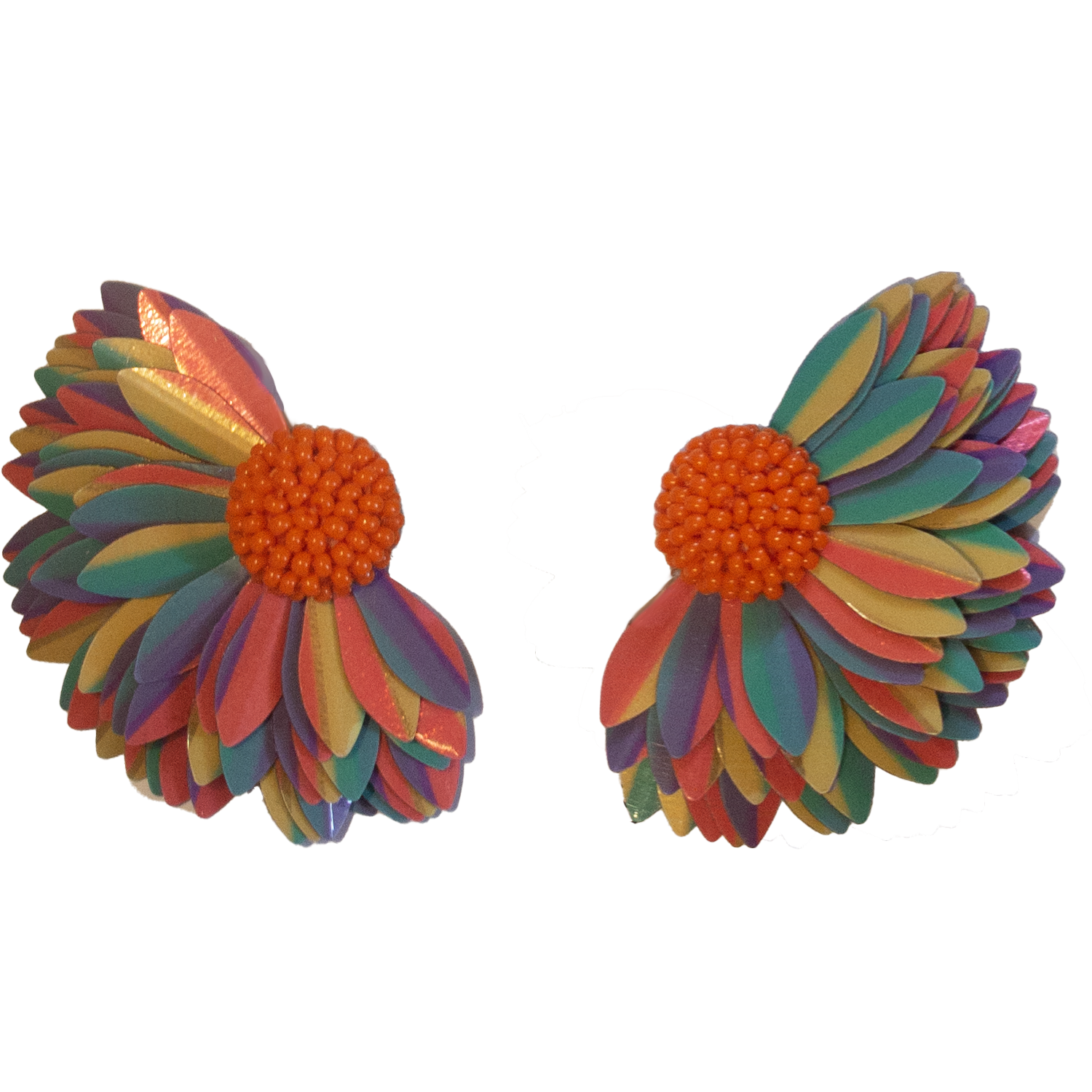 Composition : Sequins, glass beads, leather backing and gold plated brass post.