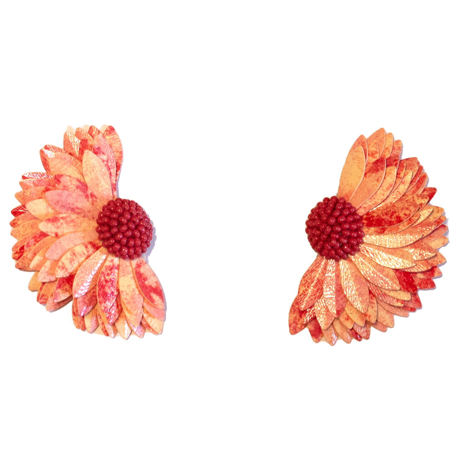 Composition : Sequins, glass beads, leather backing and gold plated brass post.