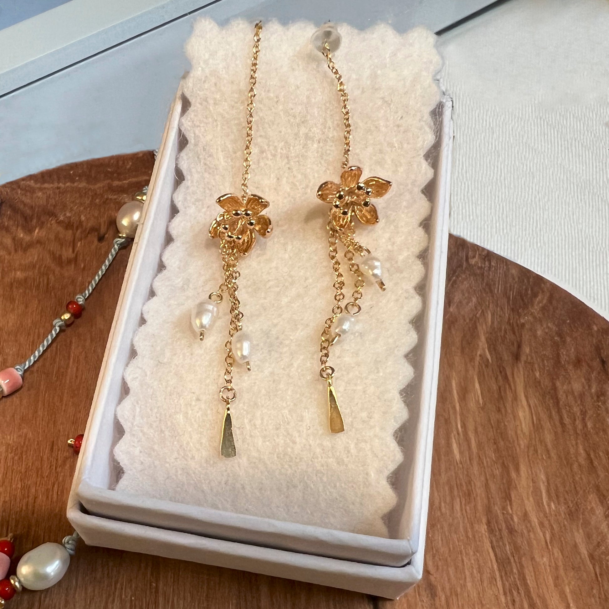 Keep in a box to preserve your treasure. For long lasting adornment store in a cool, dry, place. Keep away from light, heat, and moisture.