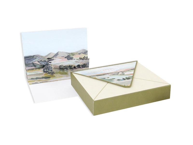 Up with Paper invited artists to illustrate four original works of art—which were then translated into pop-up or die-cut cards. Each box contains a set of eight cards paired with matching envelopes.