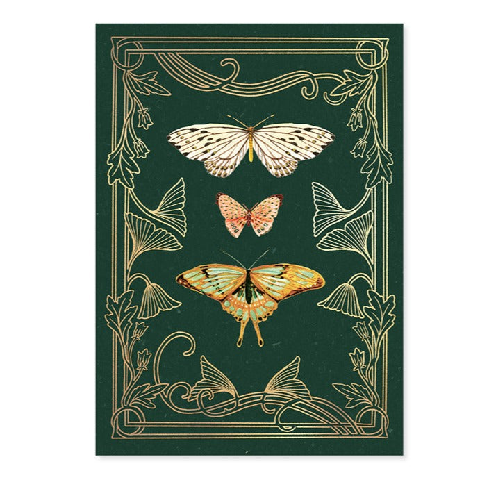 Pure Alchemy Collection features cheeky salutations and pop-ups mixed with intricate laser-cutting. A carefully pinned arrangement of butterflies and moths flap wings within a curio display.