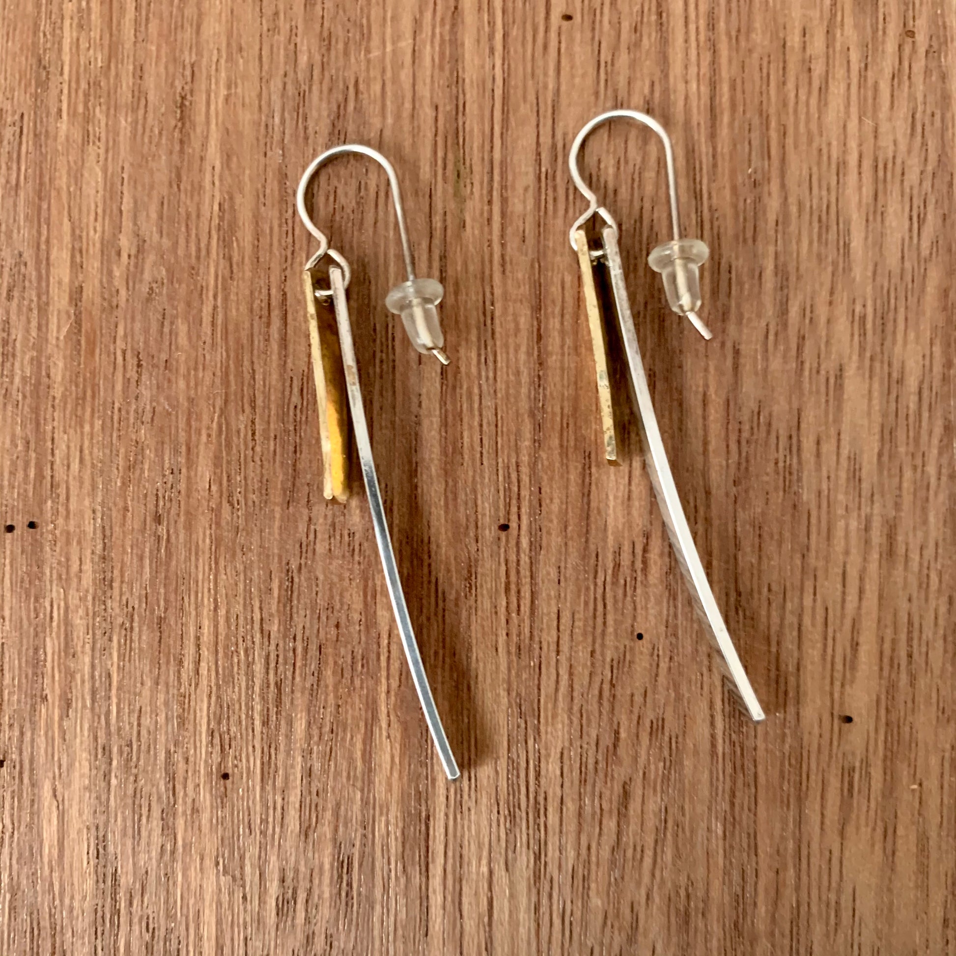 This simple bar of sterling silver is accented by a a lightly hammered gold vermeil bar, adding movement and subtle pop of color to these sleek and versatile earrings.